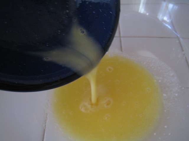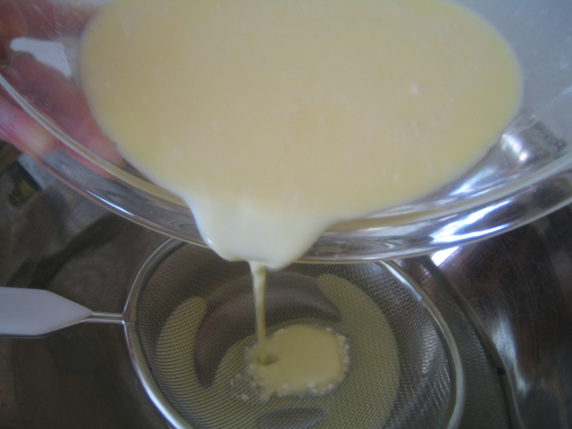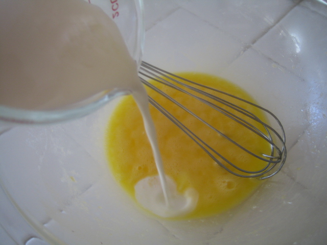 3. 鮮奶油糊倒入蛋液中混合均勻。