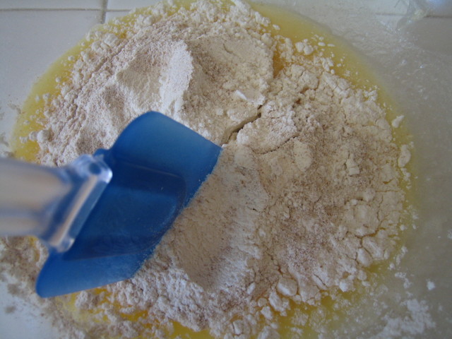 3. 加入麵粉類大致拌勻成糰即可,不要拌太久。