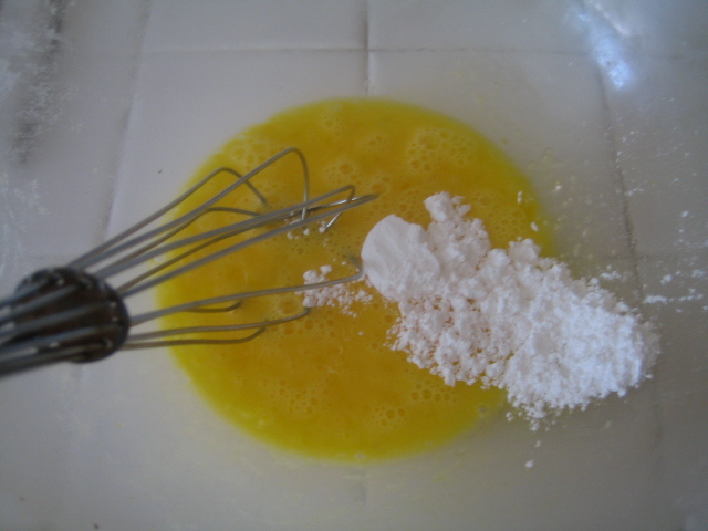 1. 蛋黃 + 蛋白先打散後,加入糖一起攪拌均勻。