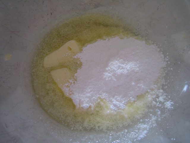 2. 將低筋麵粉、全麥麵粉、融化奶油、鹽、糖先混合均勻。