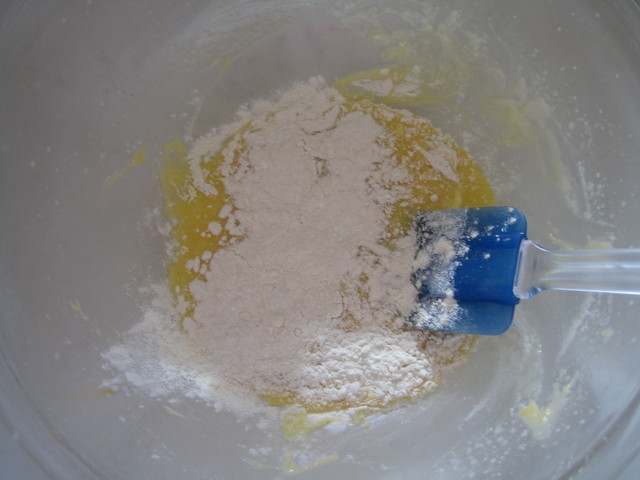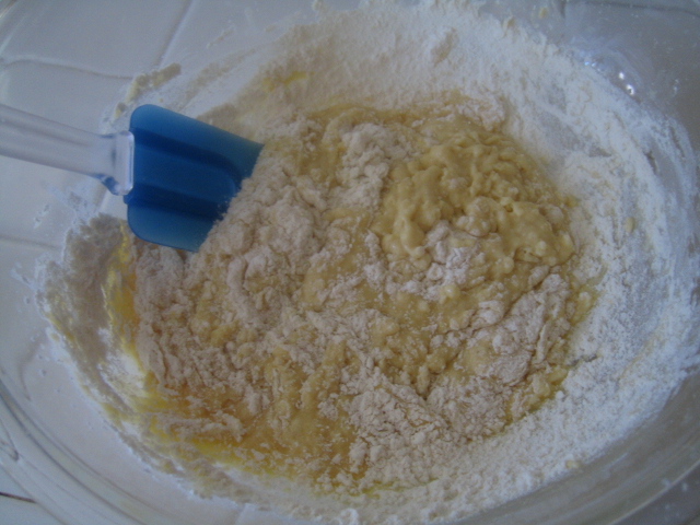 4. 將酵母和蛋液一起加入麵粉中攪拌成混合均勻的麵糰糊。