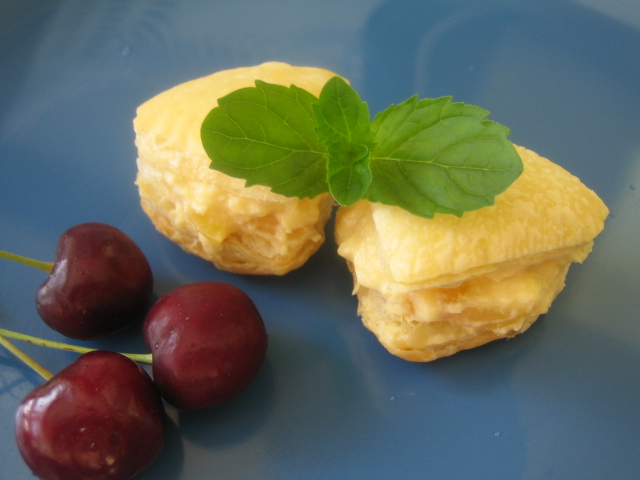 酥皮稍微撥開一些,中間填入芒果優格餡。
