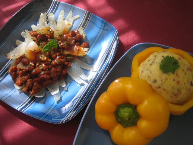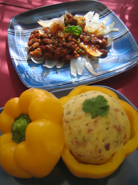 今天的午晚餐 ~ 烤洋蔥佐 Chili VS 優格藷泥