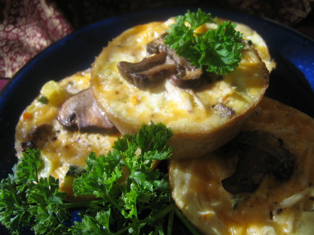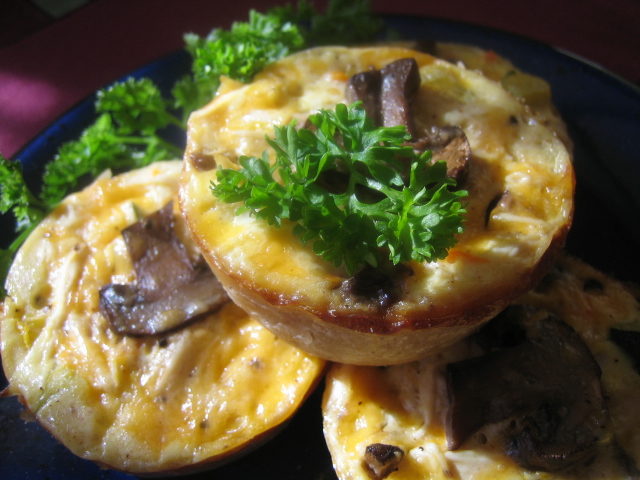 3. 將材料 A 平均放入塔皮中,最上面擺蘑菇片做裝飾。