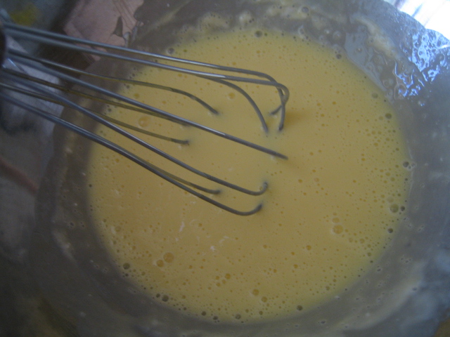 2. 蛋先打散後,加入 Cream cheese 中攪拌均勻。