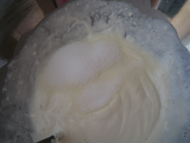 1. Cream cheese 放軟後,加入砂糖用攪拌器攪局均勻。