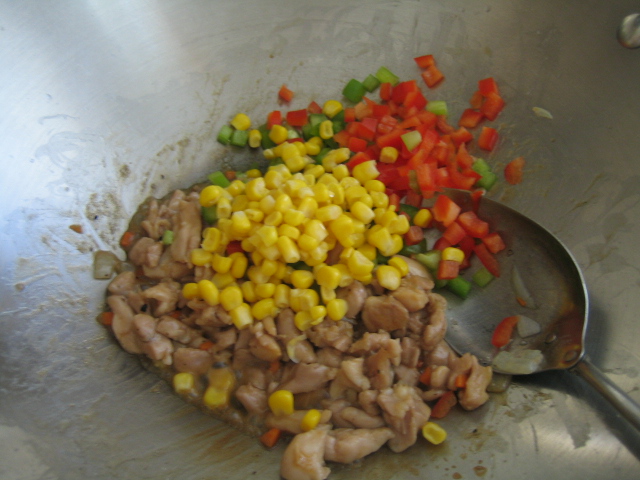3. 炒到七 ~ 八分熟時加入胡蘿蔔丁同炒。