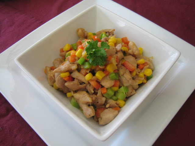 2. 熱油鍋先將洋蔥炒到微軟後,放入雞丁拌炒。