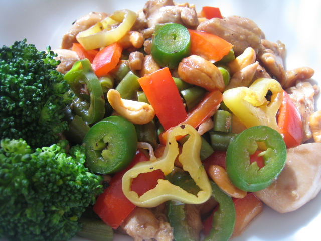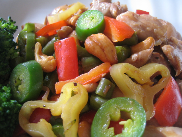 3. 放入四季豆與墨西哥青、黃椒同炒。