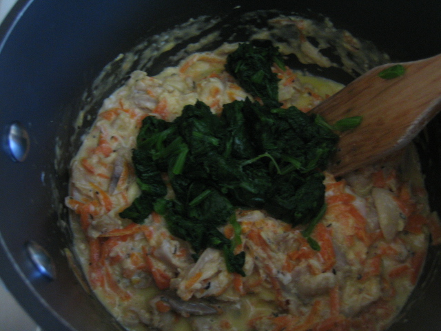 剛好冰箱有吃剩的雞肉絲和一小把菠菜,
