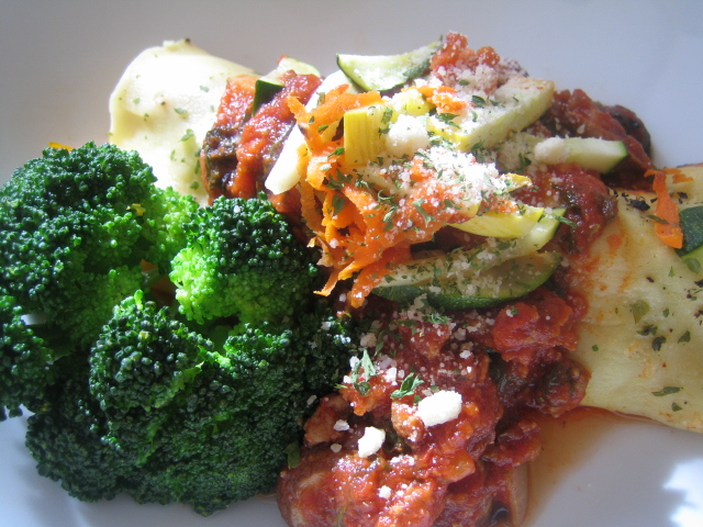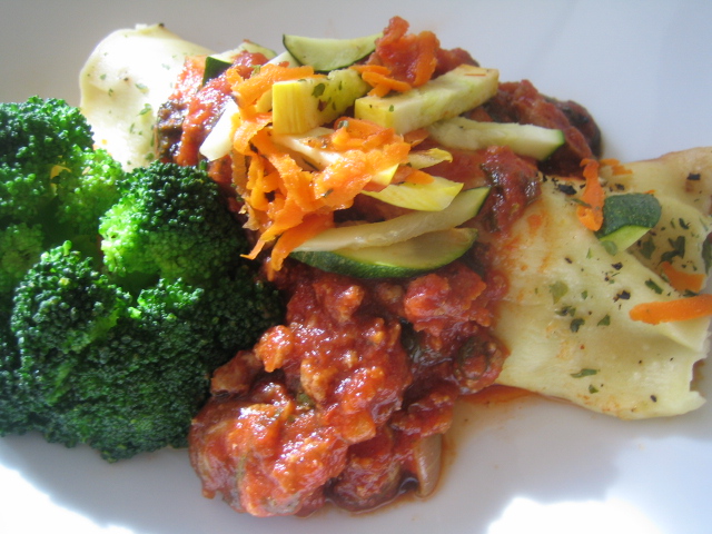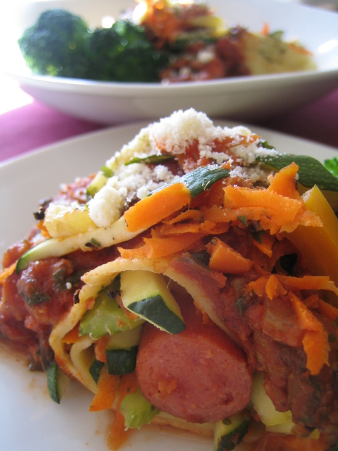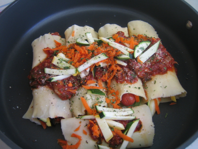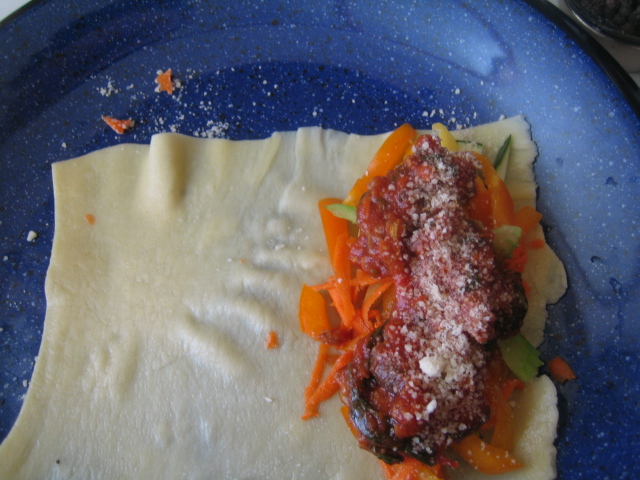 2. 亦可只放蔬菜絲和義大利肉醬,再灑一點點 Parmesan 起司粉後捲起來。