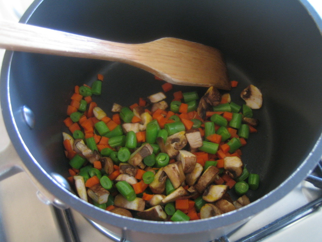 蔬菜依序放入炒至八分熟 ( 不容易熟的先炒 )