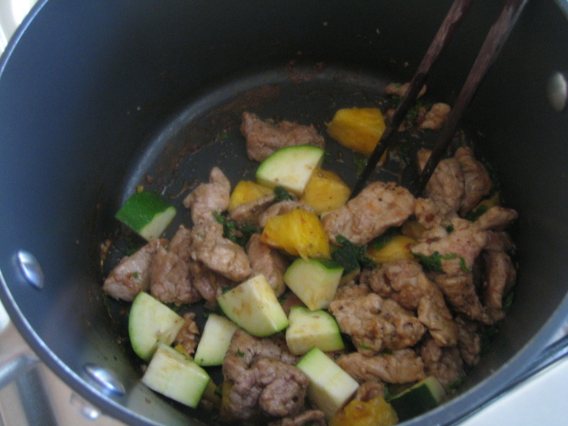我的豬排肉剩太多,因此我多炒了一道辣味鳳梨豬肉片佐炒飯吃。